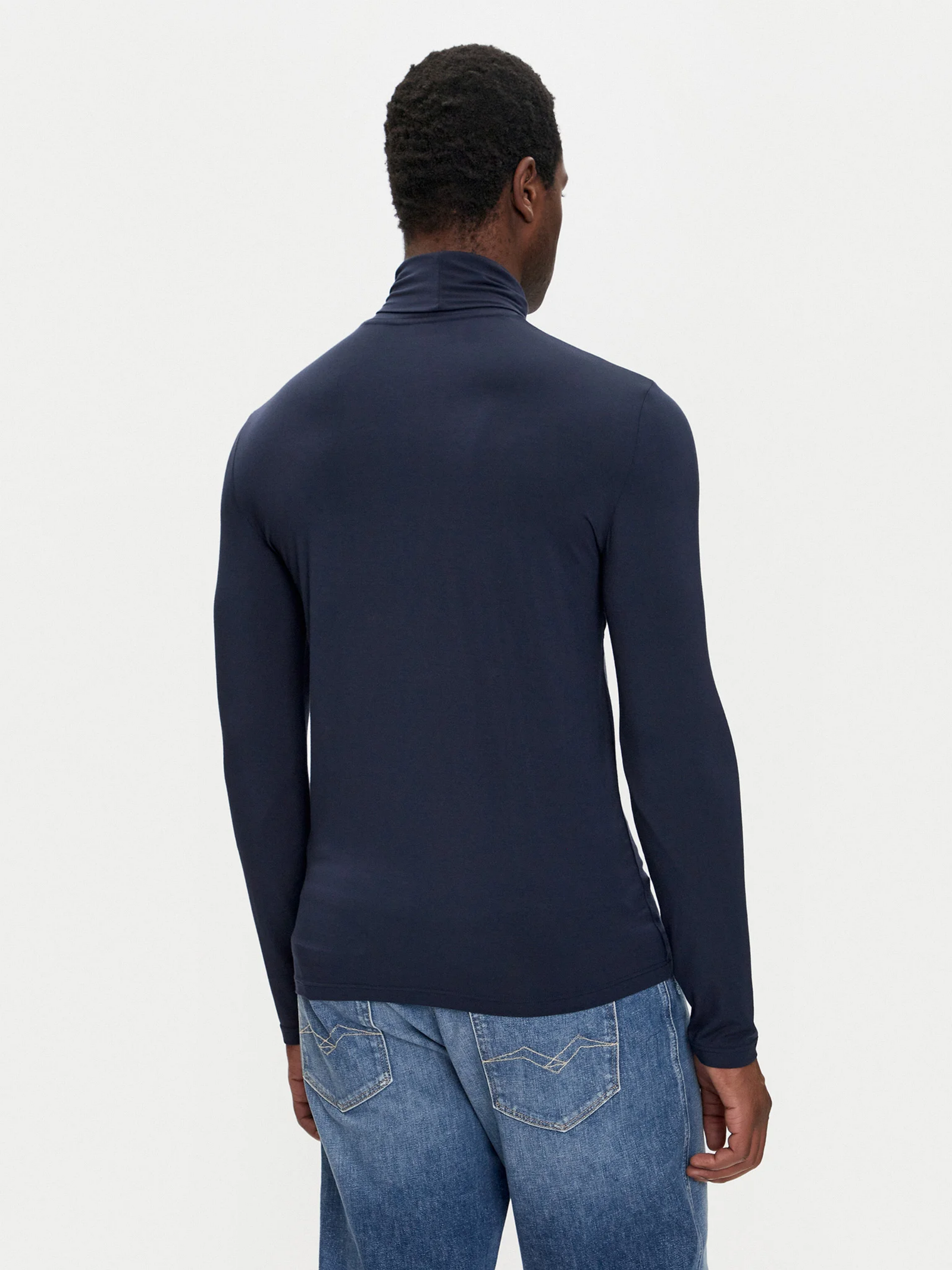 112066 4F511 – Emporio armani. Tonos: el AZUL. corte: pitillo ajustado. Cuello : alto. mangas: largas. Logo: bordado. Lavado: Lavado máquina. Consejo: toma tu talla habitual. Materia: 90% Modal, 10% Elastano.