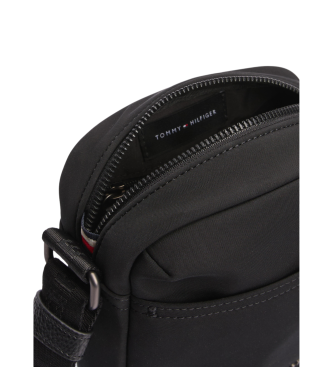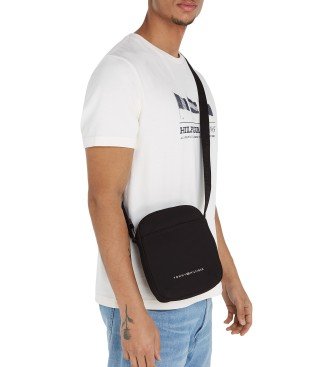 Tonos: los NEGROS. Modelo: bolso de hombre. Logo: metal. Bolsa: varios interiores. Bandolera: ajustable. Cierre: cremallera. Ancho: 16 cm. Altura : 20 cm. Profundidad: 7 cm. Materia: 96% Poliéster reciclado, 4% Poliuretano.
