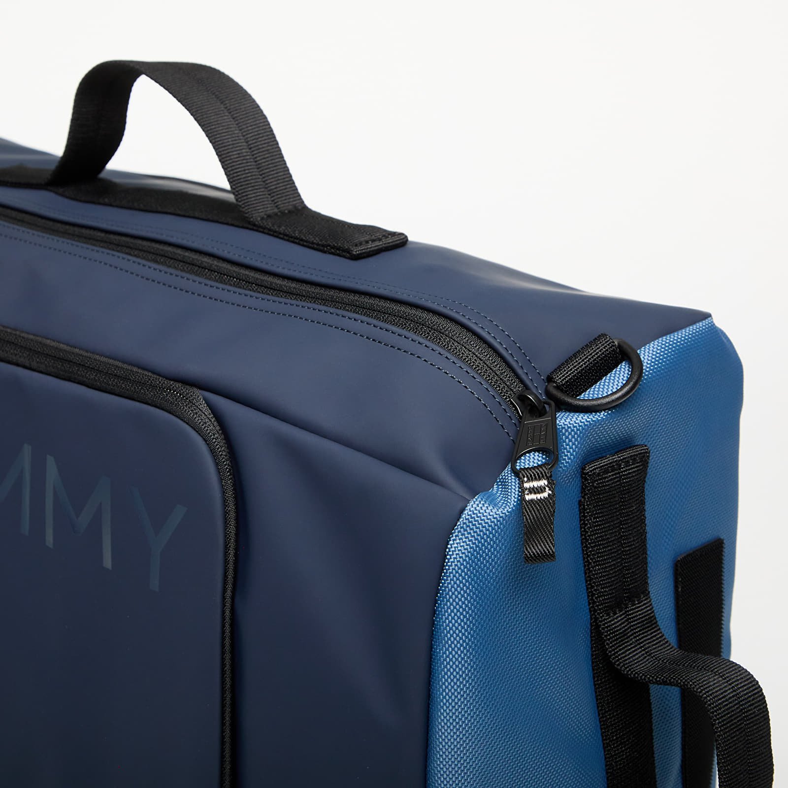 AM0AM13272 – Tommy Jeans. Tonos: el AZUL. Modelo: mochila. Logo: parcheado. Bolsa: exterior con cremallera, varios interiores. Bandolera: desmontable, ajustable. Cierre: cremallera. Ancho: 29 cm. Altura : 46 cm. Profundidad: 20 cm. Volumen: 24L. Materia: 67% Poliuretano, 33% Poliéster reciclado.